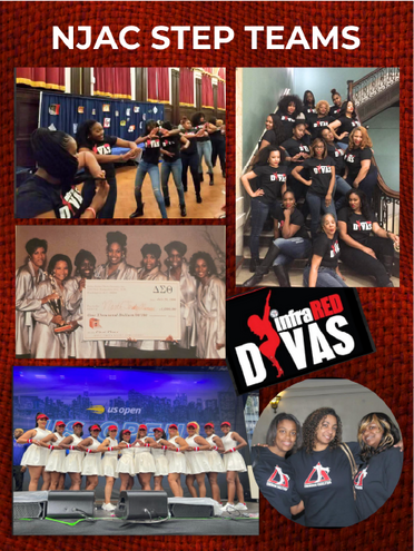 This collage highlights the dynamic presence of the North Jersey Alumnae Chapter’s Step Teams, proudly represented by teams such as the present-day InfraRED Divas, whose artistry and precision continue Delta Sigma Theta’s powerful legacy of stepping. Rooted in African diasporic traditions—drawing from rhythmic storytelling, call-and-response, and community bonding—stepping has long held deep cultural significance within Black Greek-letter organizations and the broader Black community. It is both an art form and a historical expression of unity, discipline, and resistance, passed from one generation to the next. In the 90's, the NJAC step team won at the National Convention step competition.